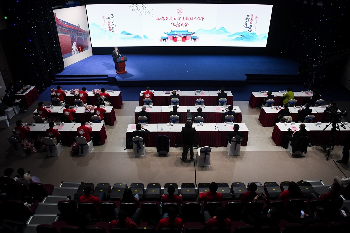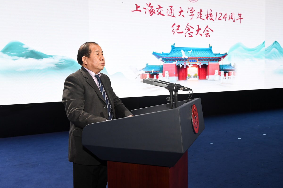 校党委书记杨振斌以“饮水思源情牵交大,栉风沐雨爱国荣校”为主题发表讲话,杨振斌书记表示,面向未来,我们要更加奋发有为,努力将交大建成栋梁之才的哺育之地、重大创新的策源之地、思想文化的引领之地、全球英才的向往之地!