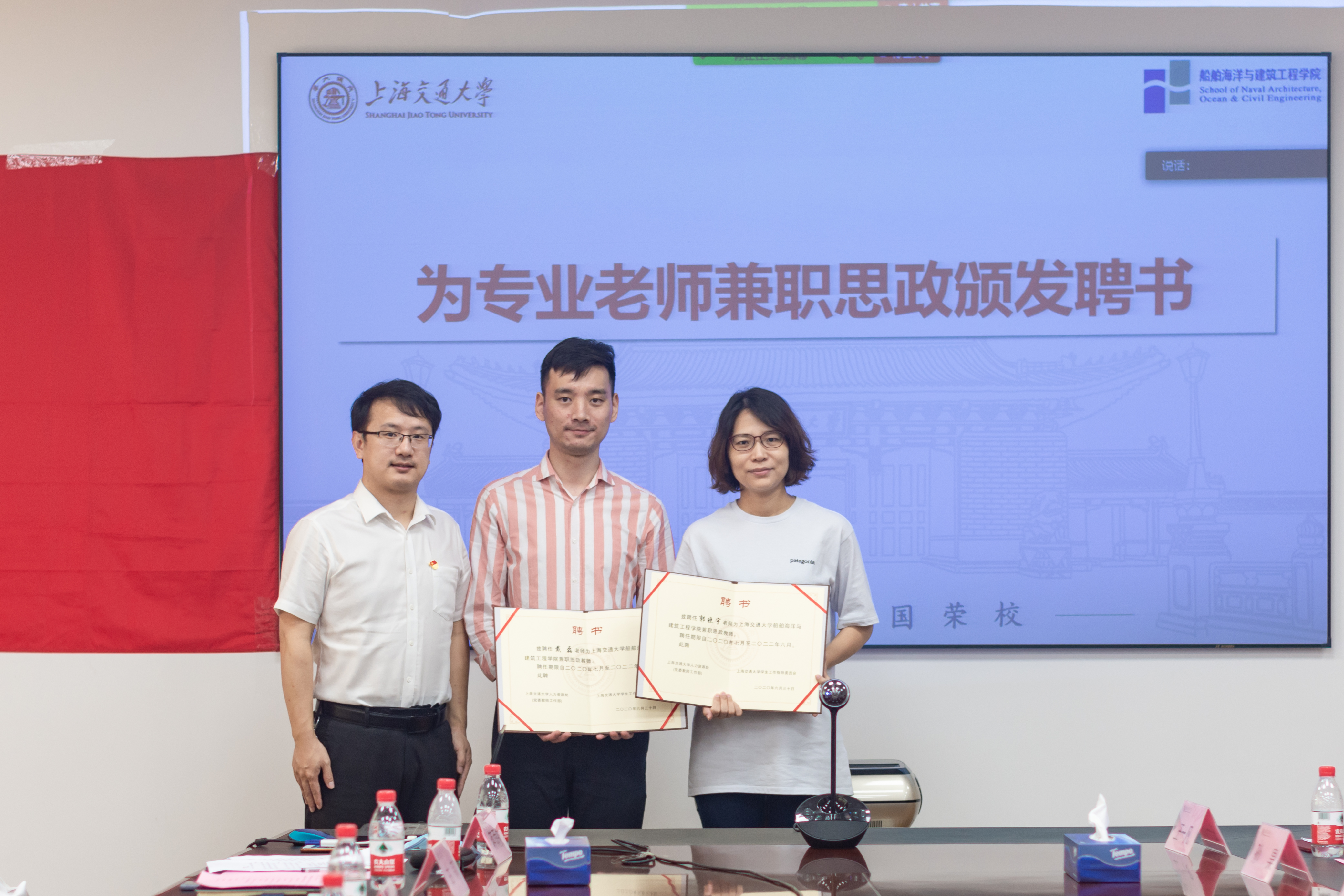 选聘优秀专业教授兼职思政,是学院为充分发挥专业教师优势,促进专业教育与思政教育相融合而推出的创新举措。自2017年底学院在全校率先聘任专业教师兼职思政以来,收获了很好的全员育人效果。近期,学院又遴选了郭晓宇、戴磊等两名新的专业教师兼职思政,宋续明在会上为他们颁发了聘书。