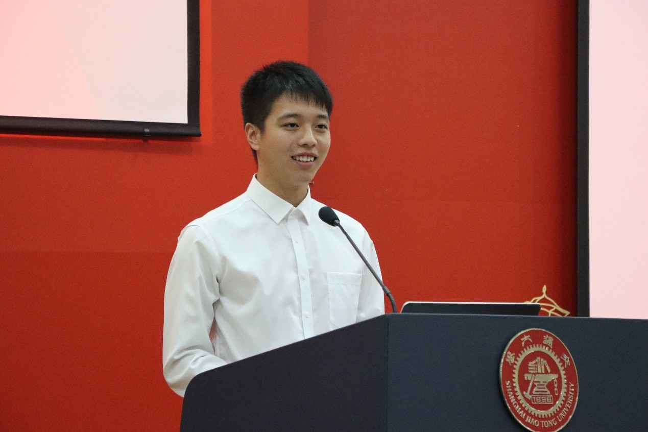 随后,2020级本科生新生代表、海洋工程类张志豪同学发言。他讲述了自己中学时期对于交大成人漫画 的向往,分享了梦想成真的喜悦,并励志要加倍努力,追随前辈们的脚步,成为能够担起时代使命的交大人。
