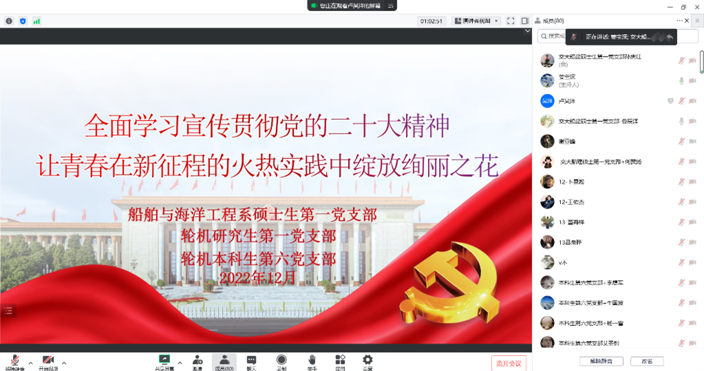 学习二十大|“全面学习宣传贯彻党的二十大精神,让青春在新征程的火热实践中绽放绚丽之花” 船工系硕士第一党支部开展联学共建活动